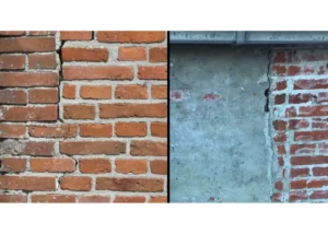 Scheur in afwerking betonwand/betonlatei betonkolom e.d.