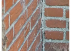 Plaatselijk nieuw voegwerk aansluitend op kalkmortel.