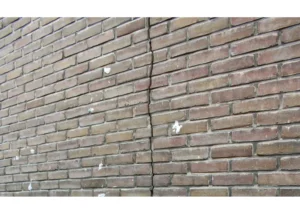 Scheurvorming in de topgevel door invloed van horizontale winddruk.